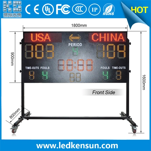 1. The scoreboard is carefully designed according to the characteristics of basketball games. It is made of high-brightness LEDs made in Taiwan and has a life span of more than 100,000 hours. It has the advantages of high brightness, good visibility, low power consumption and long service life.