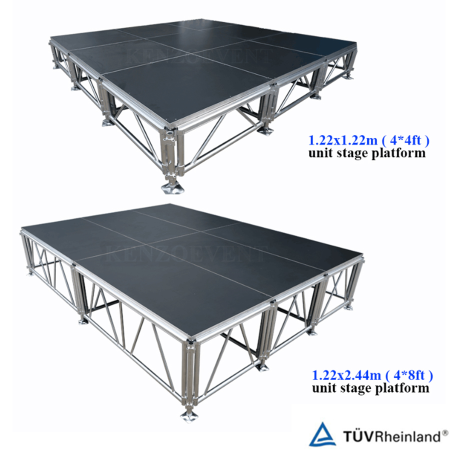 Professional Event Decoration Stage Show EquipmentFrame materialAluminum 6061-T6 US Standard Portable StageEU Standard Portable StagePlatform size4'x4'/4'x8'1m x1m /1m x2mHeight options16''/24''/32'',24''/32''/40'',32''/40'&......