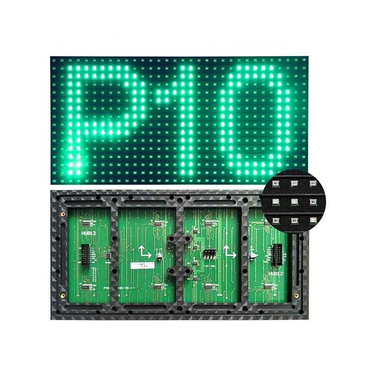 Pixel Pitch 10 mm Pixel Density 10,000 dots/sqm Module Resolution 32x16 dots Module Size 320(w)x160(h)mm Scanning Method 1/4 scan Brightness ≥8,000 cd/sqm Pixel LED SMD Pixel Configuration 1in1 (1G) Input Voltage 5V Lifespan 85,000~100,000 hours Interface Way HUB 12 Viewing angle Hori......