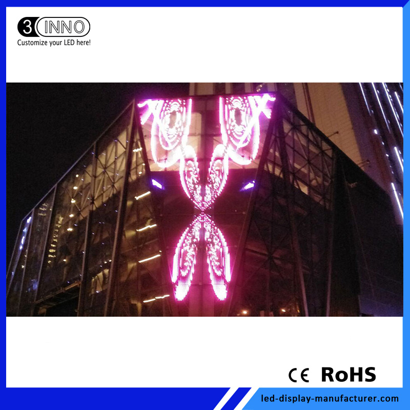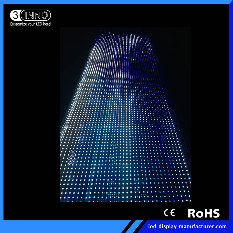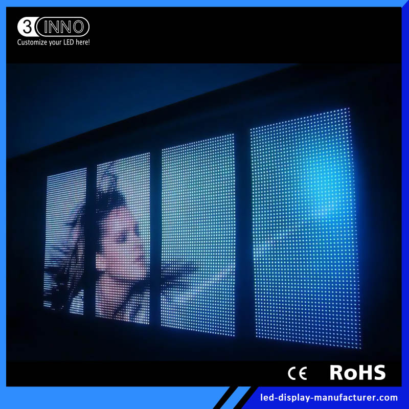 P37.5(4leds) Outdoor High Transparent LED Screen Flexible Mesh DisplayFlexible LED Mesh can be arbitrary bent into an arc, circle, waves, etc. Size and color can be customized. It is 70%~80% transparency, can make the screen and stage lighting as a whole, rendering vivid stage effect. Lock the two j......