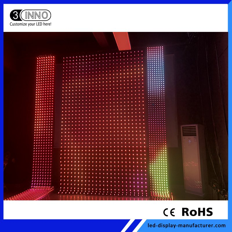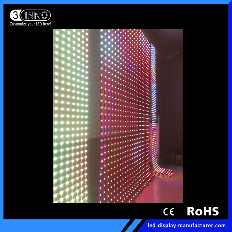 P37.5mm High Brightness Outdoor Flexible LED Curtain Display ScreenFlexible LED Mesh can be arbitrary bent into an arc, circle, waves, etc. Size and color can be customized. It is 70%~80% transparency, can make the screen and stage lighting as a whole, rendering vivid stage effect. Lock the two join......