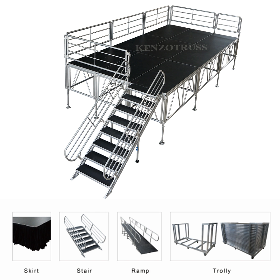 Professional Event Decoration Stage Show EquipmentFrame materialAluminum 6061-T6 US Standard Portable StageEU Standard Portable StagePlatform size4'x4'/4'x8'1m x1m /1m x2mHeight options16''/24''/32'',24''/32''/40'',32''/40'&......