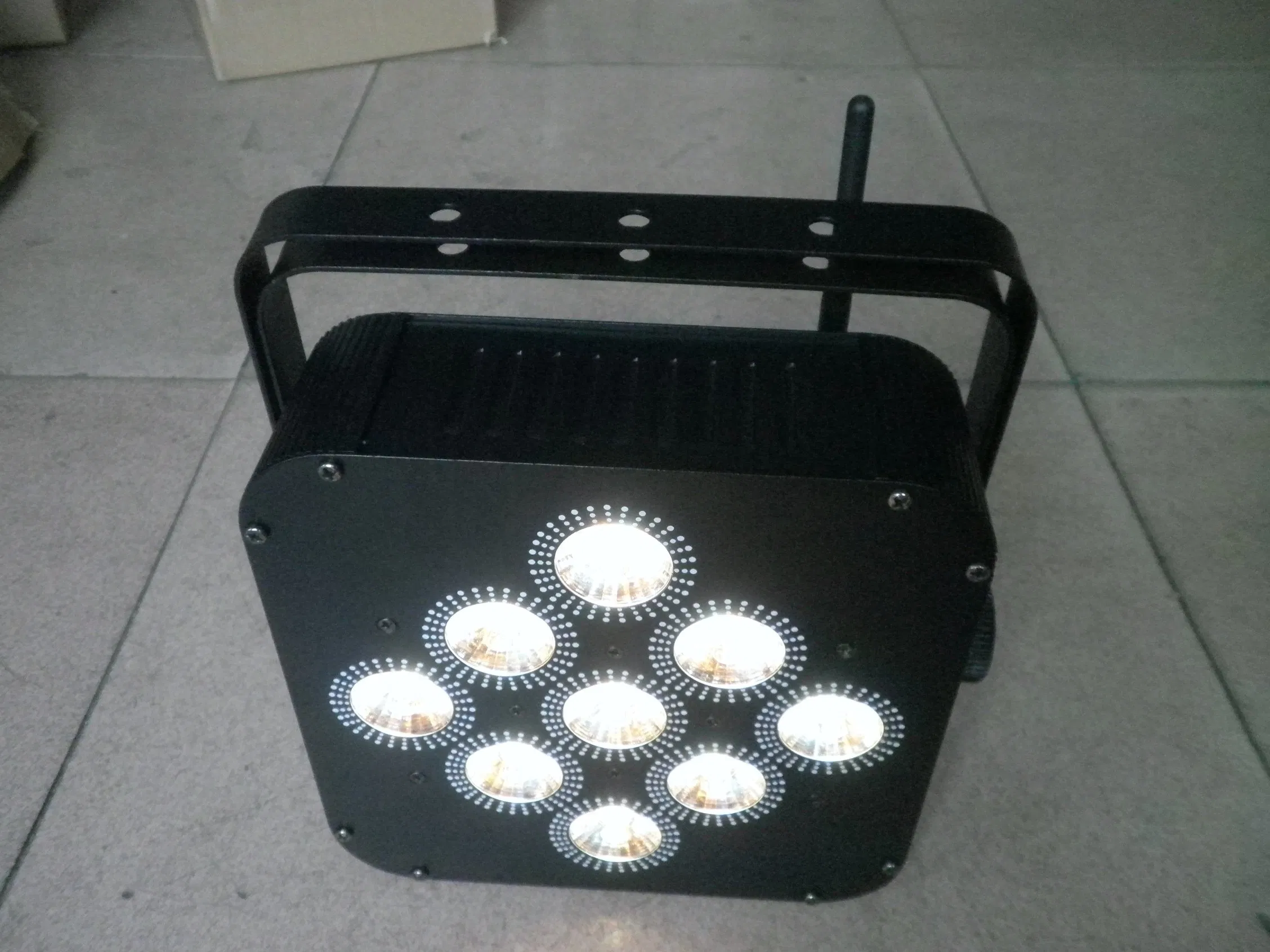 9pcs 18W high brightness 6 in 1 leds wireless parlightPower supply AC110V-250V 50-60Hz Power consumption 180W Light source 9pcs 18W high brightness 6 in 1 leds Lamp life 6-10 ten thousand hrs LED angle 30(±5) degree Color 16.7 million kinds of color change Control channels 6/10 chs Contro......