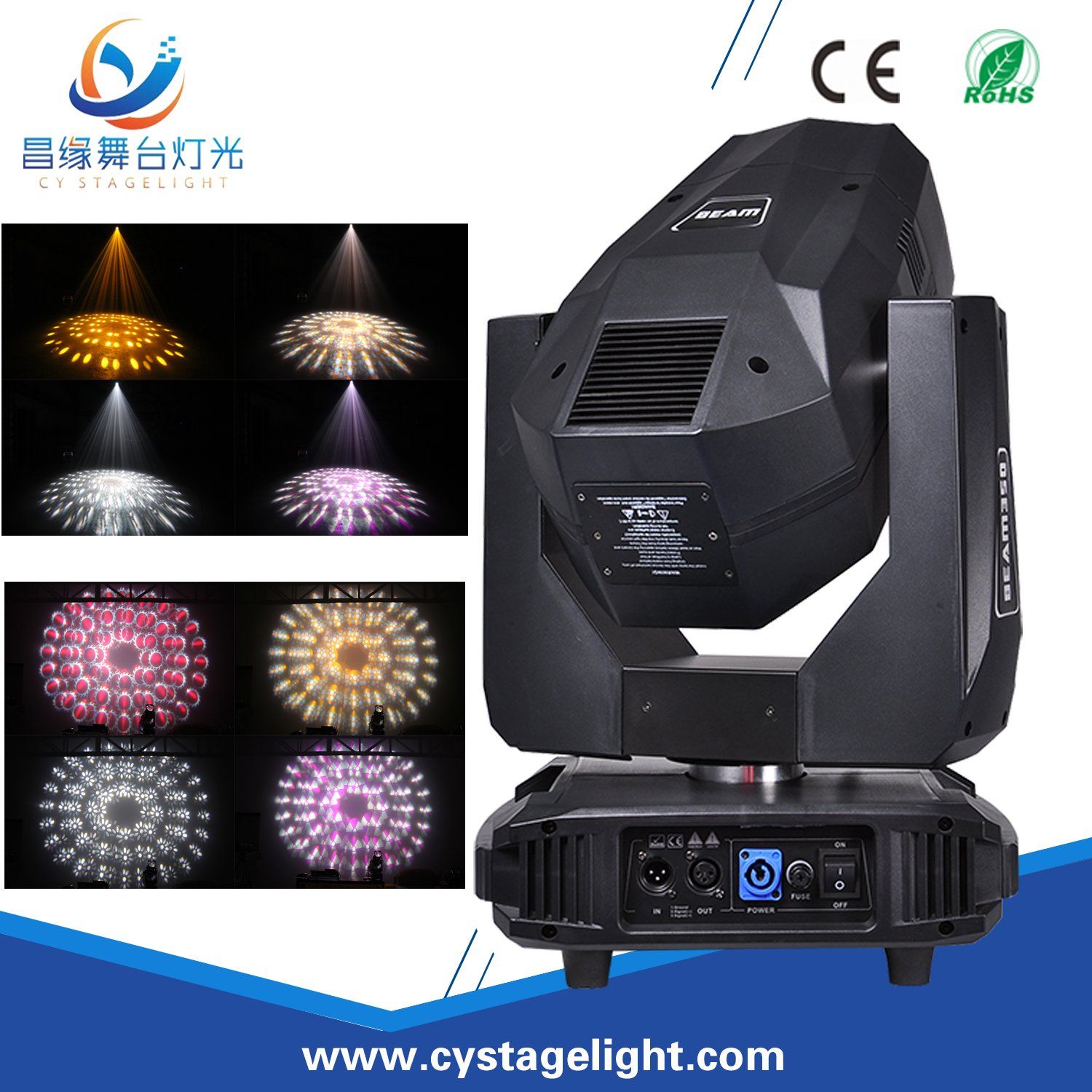 | Static Gobo | 16 Gobos+White, and bi-directionally rotable at variable speeds, Gobo shaking at variable speeds |