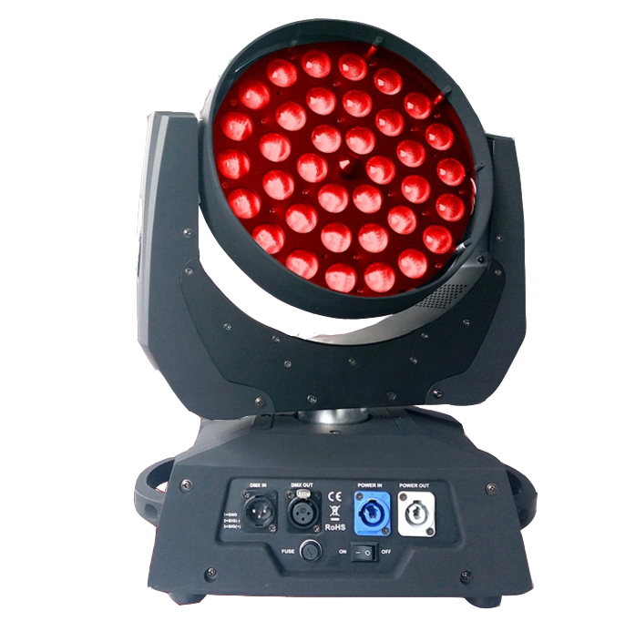 Portable Master-slave RGBW 4 in 1 Focusing Moving Head For Party Bar LightInput voltage50HZ/60HZ, AC100V-240VPower consumption400WLamp size36*12W LEDColorRGBW 4in1Dimming/frequency flashdimming,1-20 times/secRotate anglehorizontal direction 630,vertical direction 300.Control modeDMX512,16/12 channel......